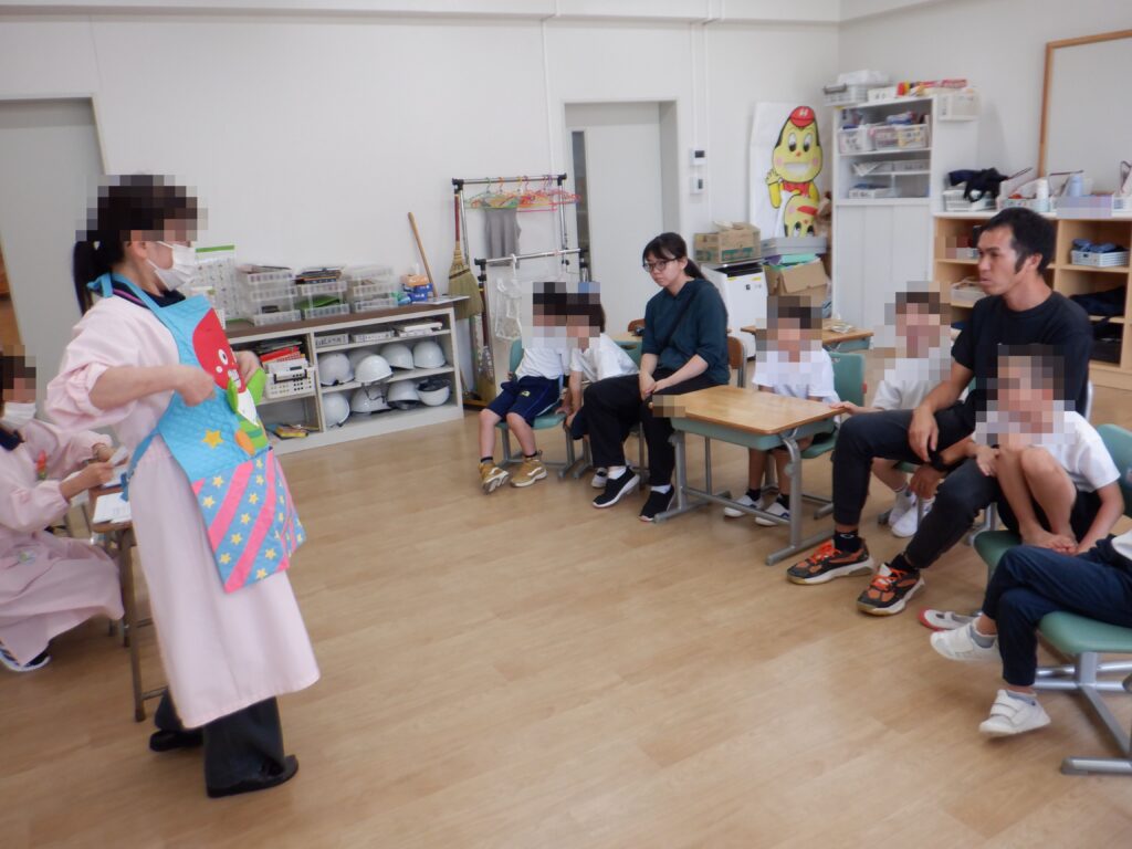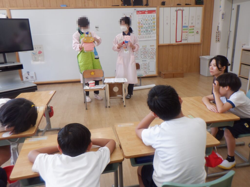 エプロンシアターでお話を聞いたり、お口の体操をしたりしました。