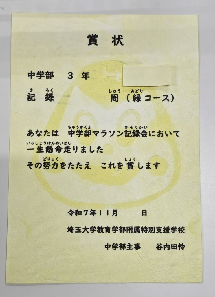 最後は一人ずつ周数や成果を発表して表彰です。表彰状は紙すき班が作ってくれました!