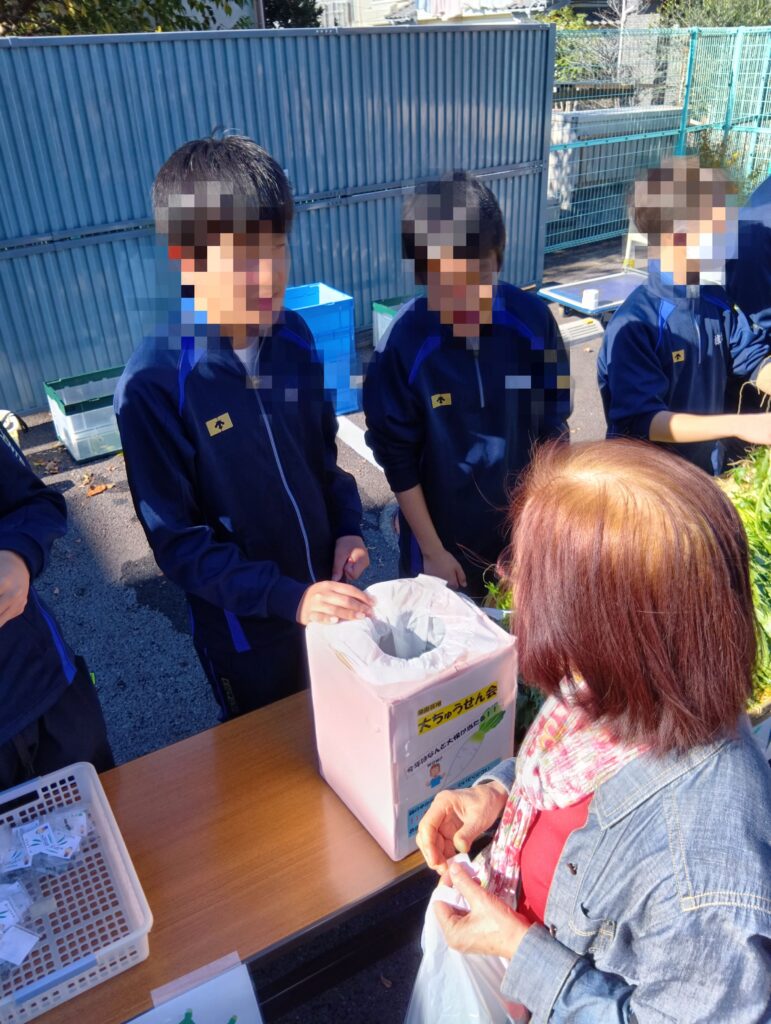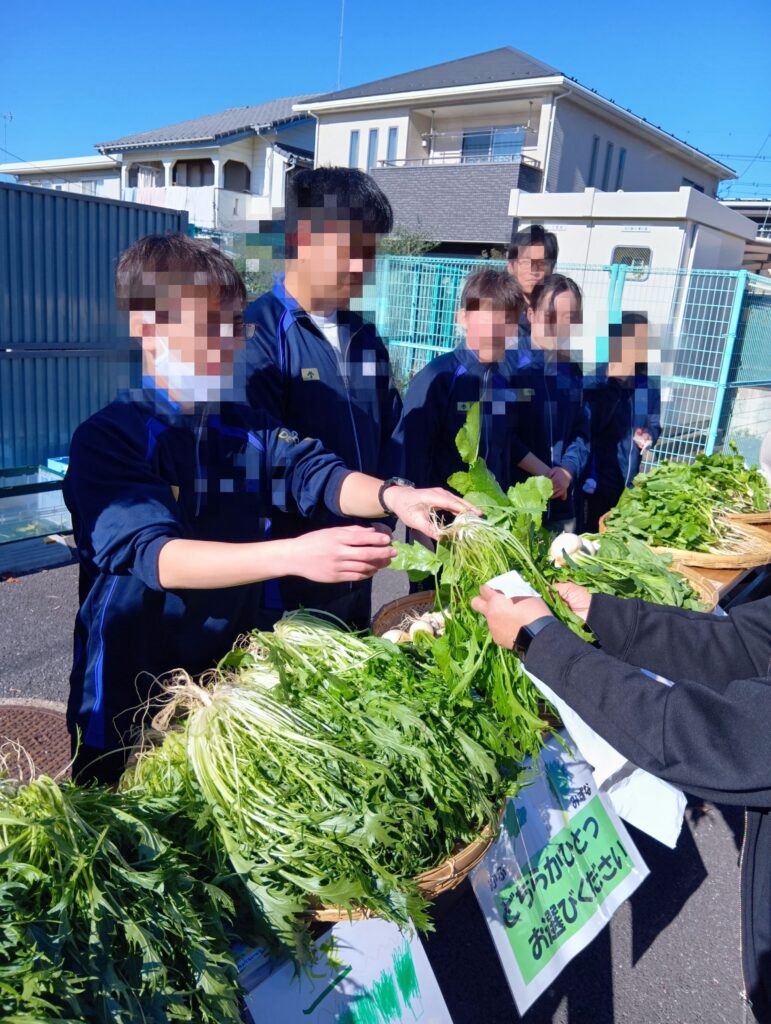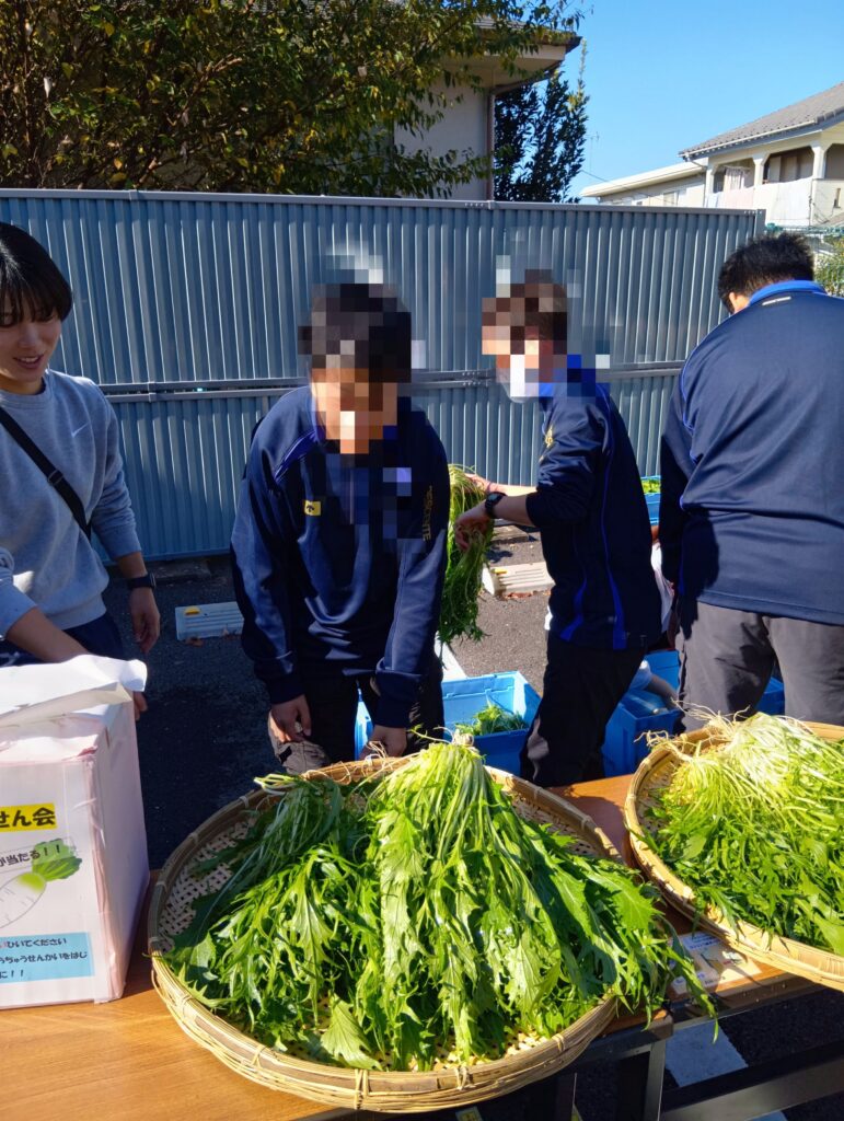 農園芸班は育てた葉大根、かぶ、水菜や大葉の種を配りました。