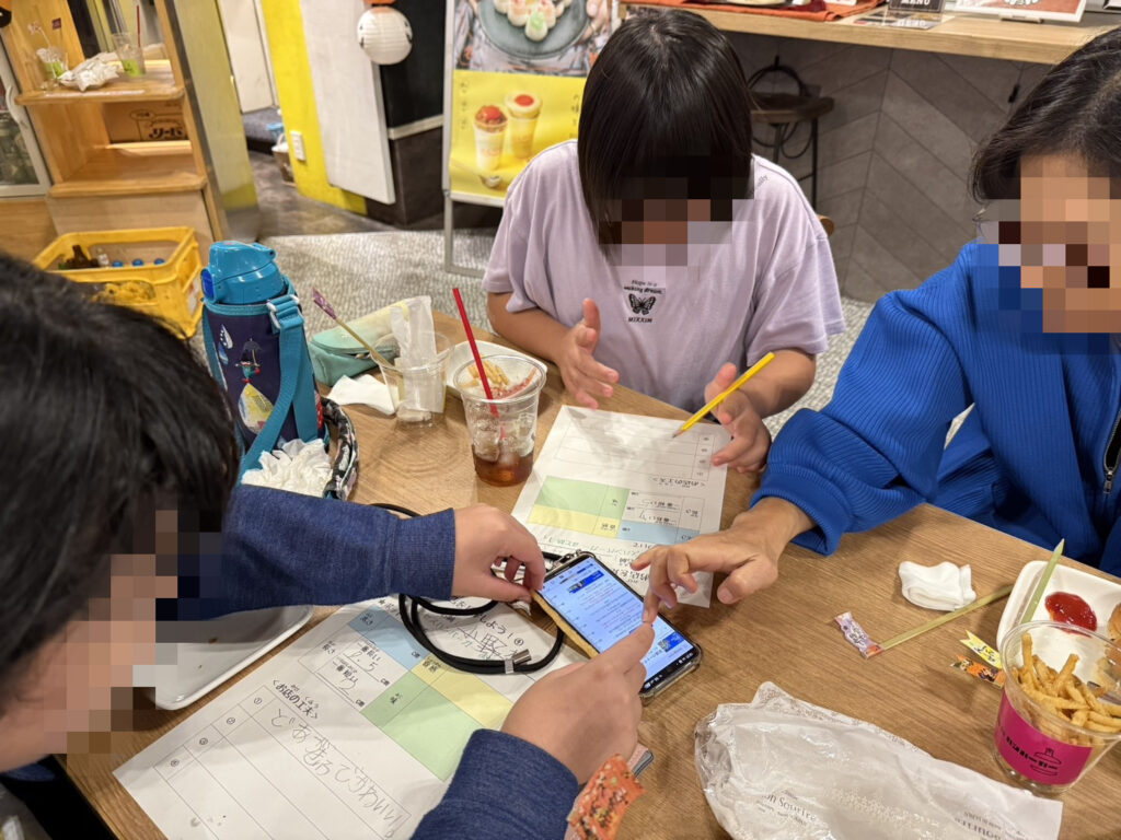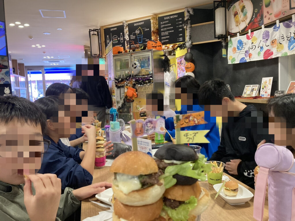 中1はポテト屋さんの開店に向けて、川越に調査です。早速、美味しそうなバーガー屋さんを見つけたようです。