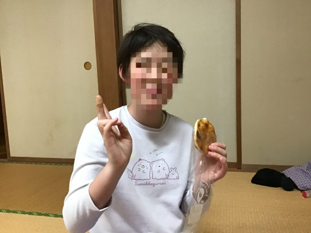 レクを楽しみ、部屋でもせんべいをパクリ!