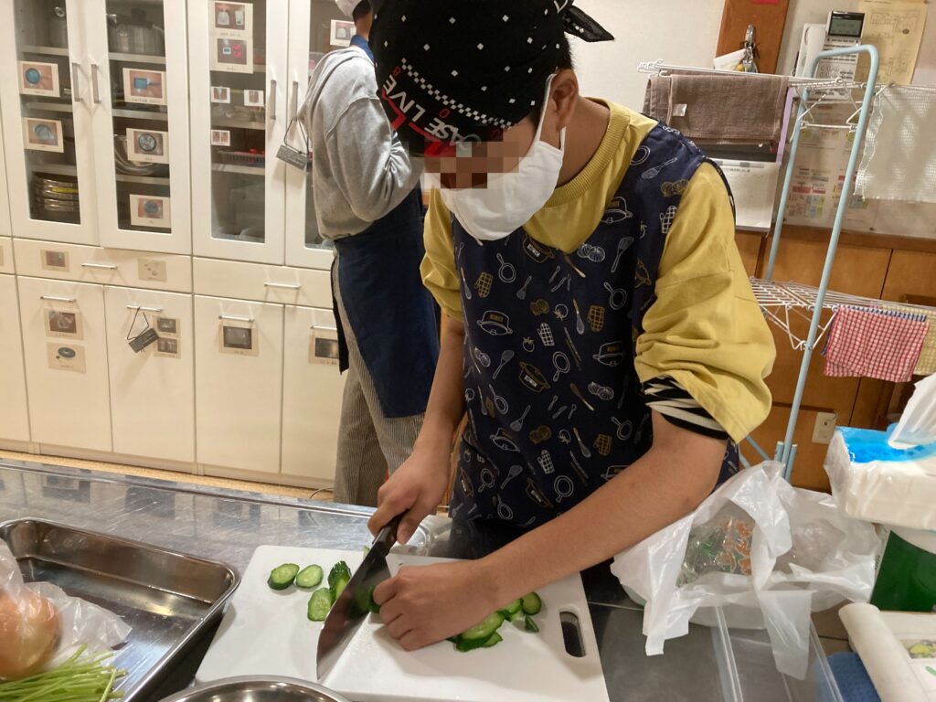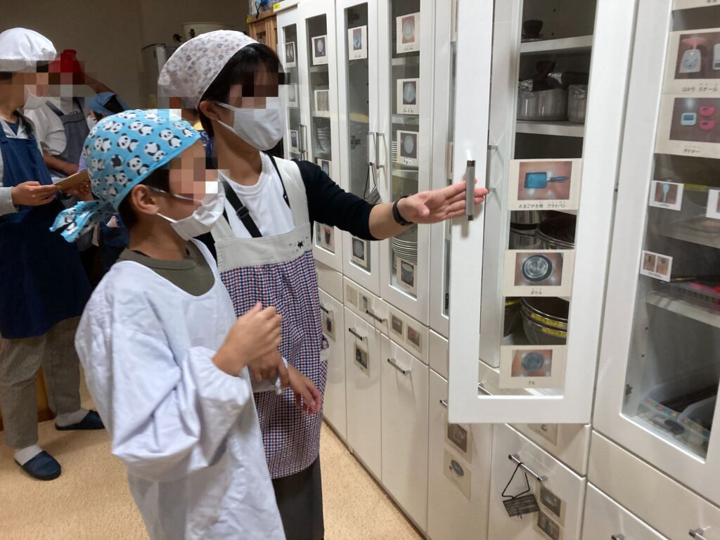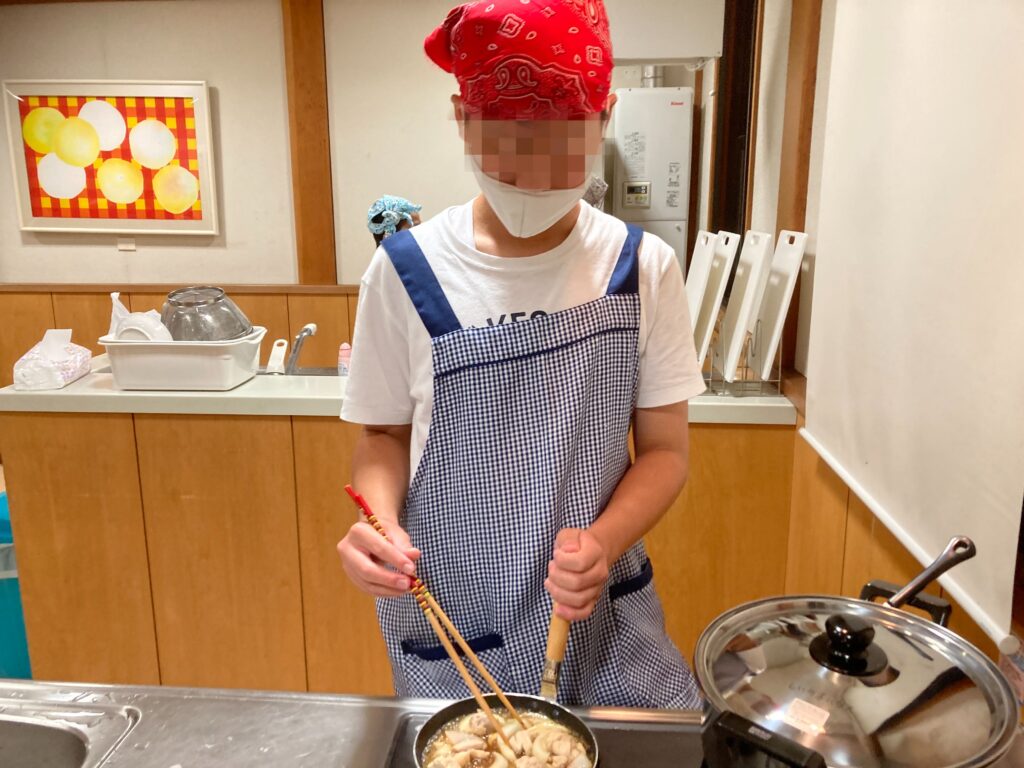 帰ってきた後はすぐに夜ご飯づくりです。道具から自分たちで準備します。