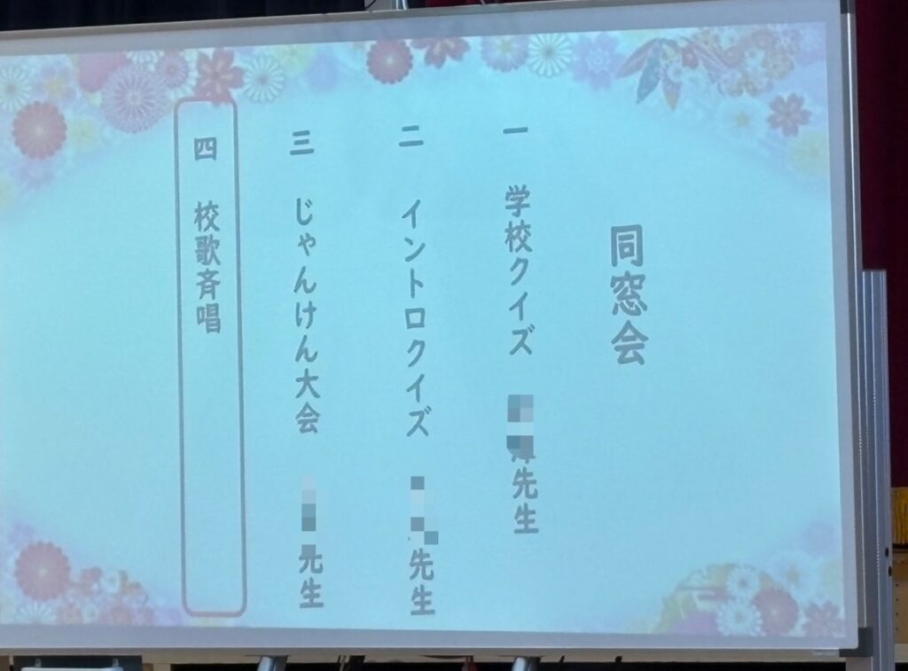 同窓会では、「イントロクイズ」「校長先生とじゃんけん大会」が行われ、楽しいひと時を過ごしました。