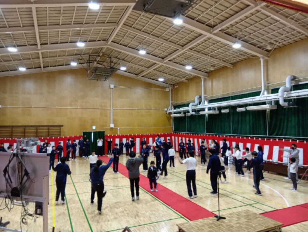 今年度最後のダンスは、本校おなじみ、「翔んで埼玉」の名曲、ニュー咲きほこれ埼玉!全校のみんなで、元気よく踊りました。さいたまポーズもばっちりでした。