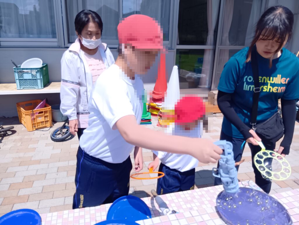1年生の自己紹介の後、外に出て小学部みんなで思い切り遊びました。
