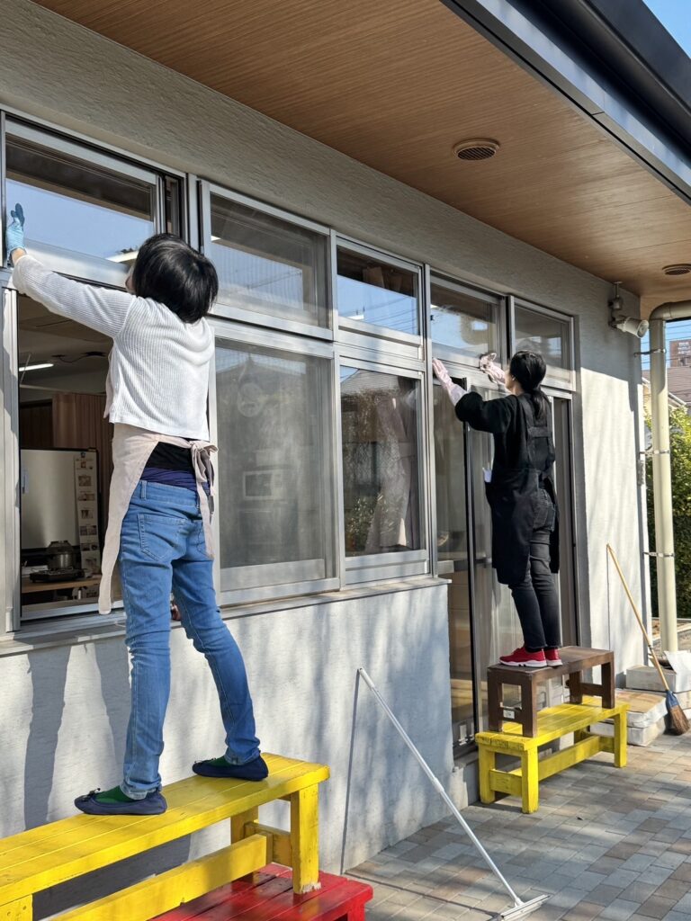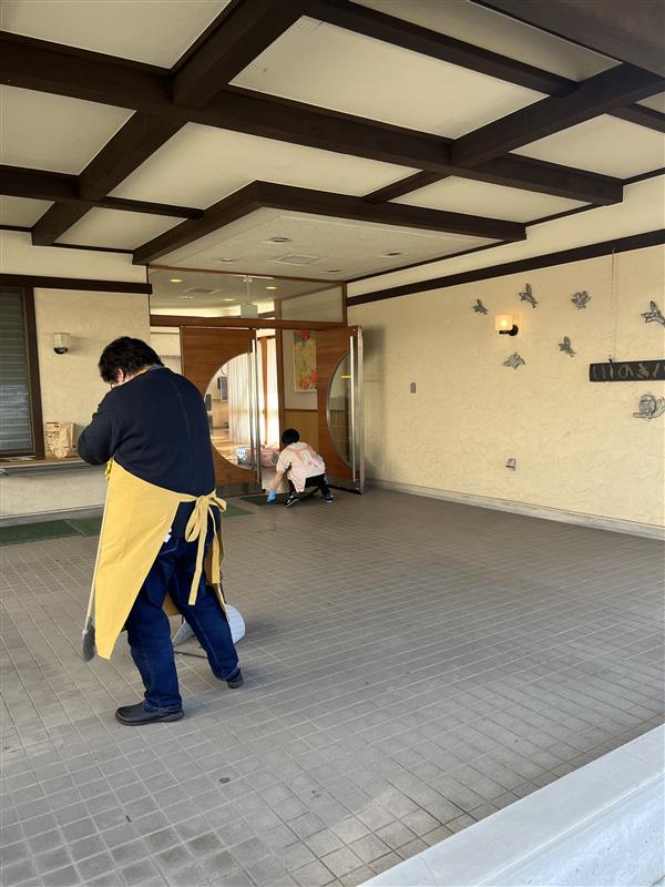 小学部はC棟(小学部棟)、中学部はしいのきハウスと体験学習室、高等部はA.B棟(中高学部棟と作業棟)と体育館入口、と作業場所を分担し、限られた時間ではあるものの隅々まで清掃しました。