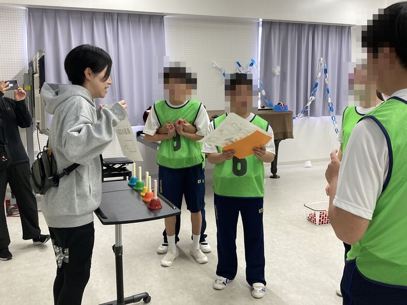 自己紹介の後はみんなでグループに分かれてレクリエーションを行いました。それぞれのグループにはお題が書かれたワークシートが配られ、一番速くクリアしたチームが優勝です!今回は赤チームが優勝でした。お互いに協力しながら課題をクリアすることで仲を深めることができました。