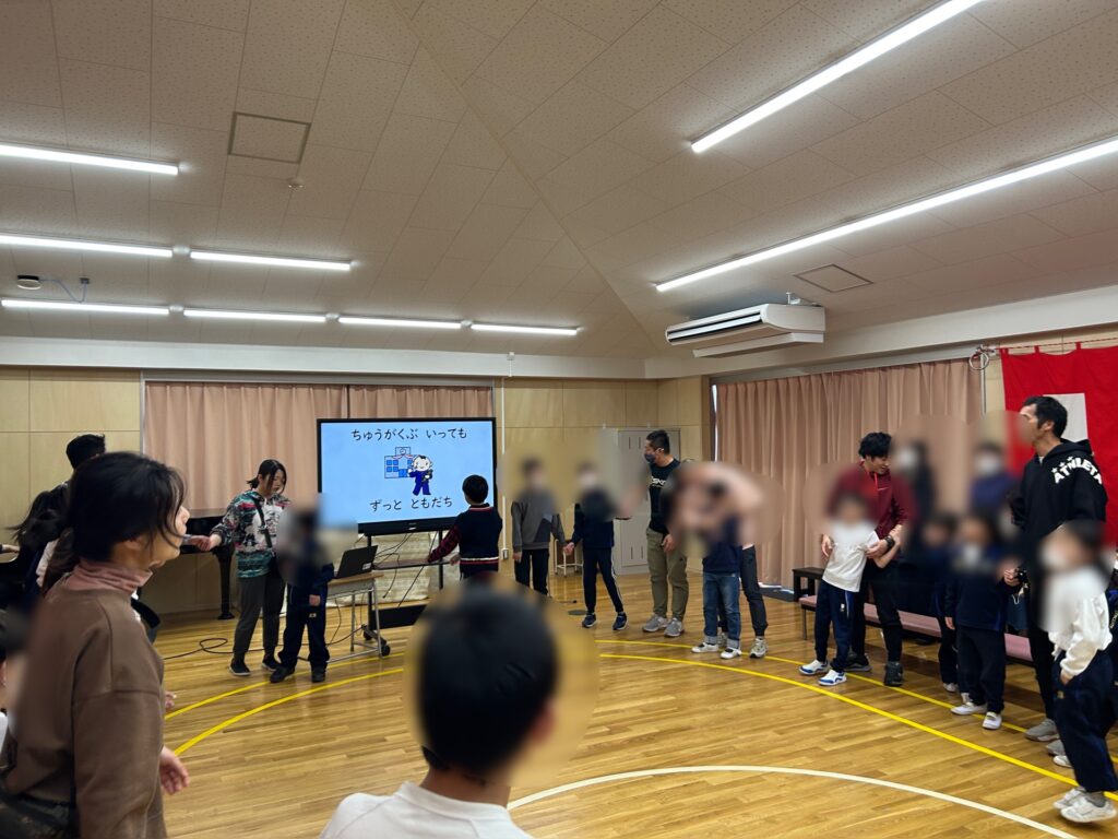 6年生のリクエストダンスを踊ったり、みんなで大きな輪になり「みんなともだち」を歌ったりしました。