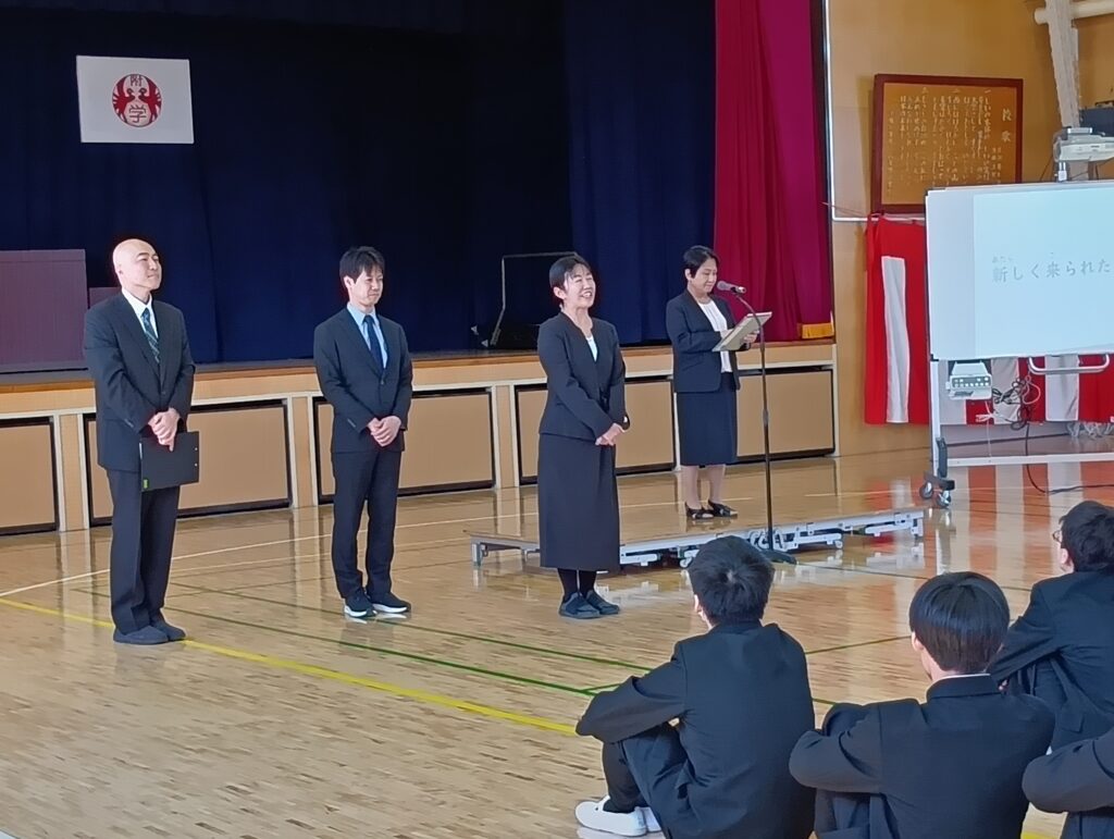 新たに着任した内河校長先生、遠山副校長先生、諸先生方の紹介がありました。