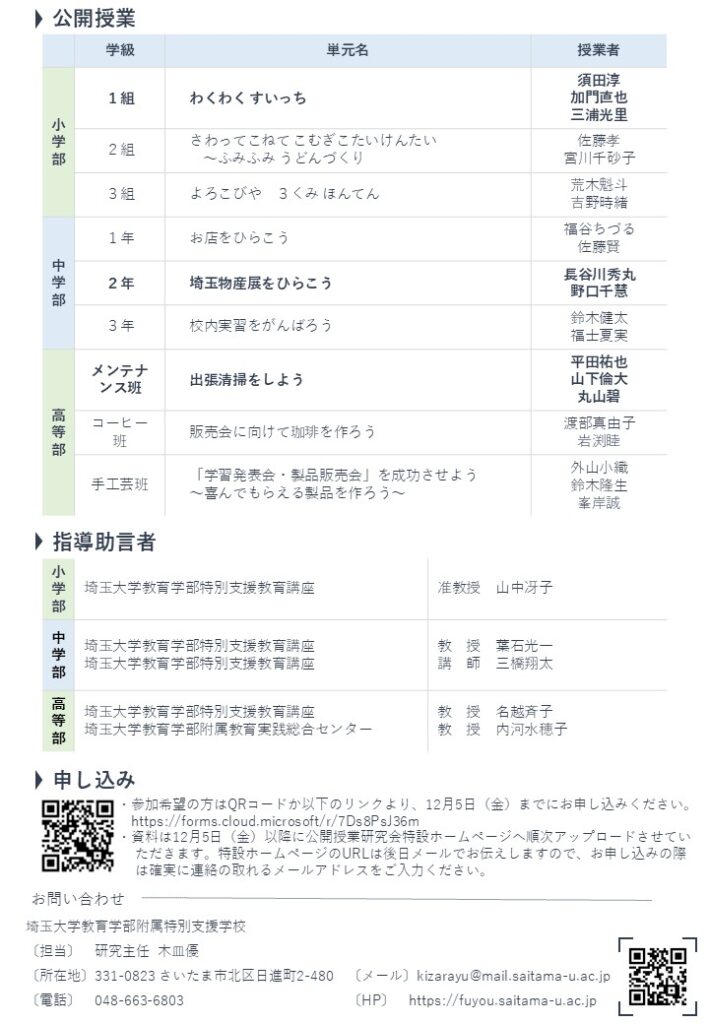 研究協議会・公開授業研究会では、県内外の特別支援教育に携る方、関心をおもちの方を対象として、埼玉大学、埼玉県・さいたま市等から指導助言者の方々をお招きし、実践をご覧になっていただいたり、研究成果や研究に基づいた授業実践を発表したり、研究協議を行ったりします。毎年、多数の参会者による授業参観、活発な意見交換等が行われ、授業の質の向上に努め、本校の性格の1つである教育に関する理論及び実践についての研究・実証に取り組んでいます。